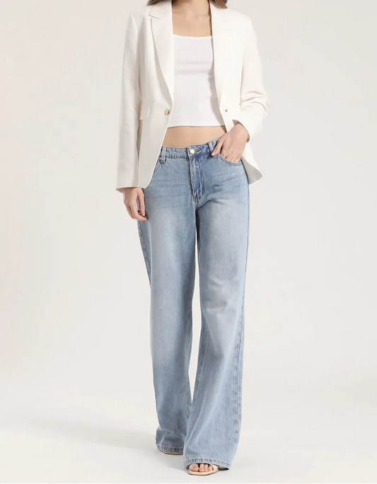 Jeans Palazzo Relax tiro Medio Denim Celeste