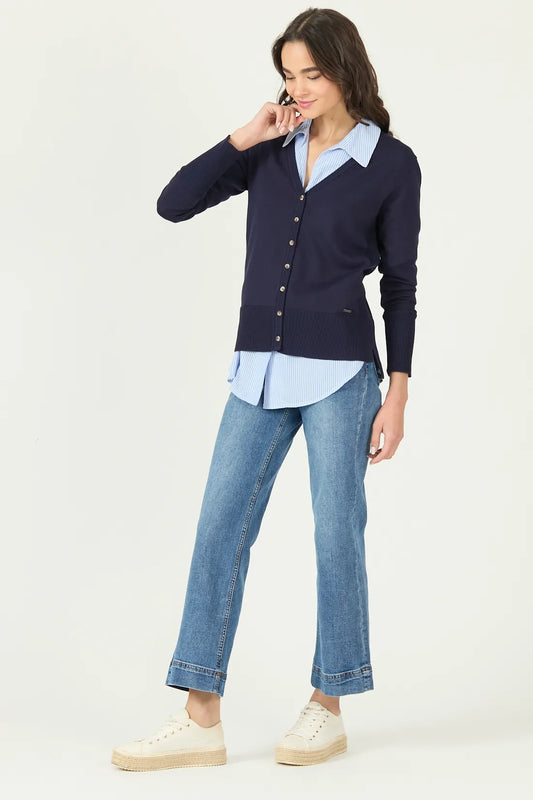 Chaleco Mujer Manga Larga Abotonado Azul Marino