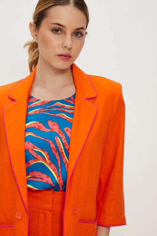 Blazer Mujer Lino Viscosa Vivos De Color Naranjo