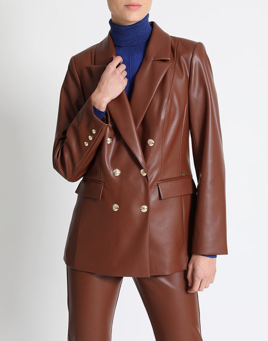 Blazer Mujer Efecto Cuero 3841 Chocolate
