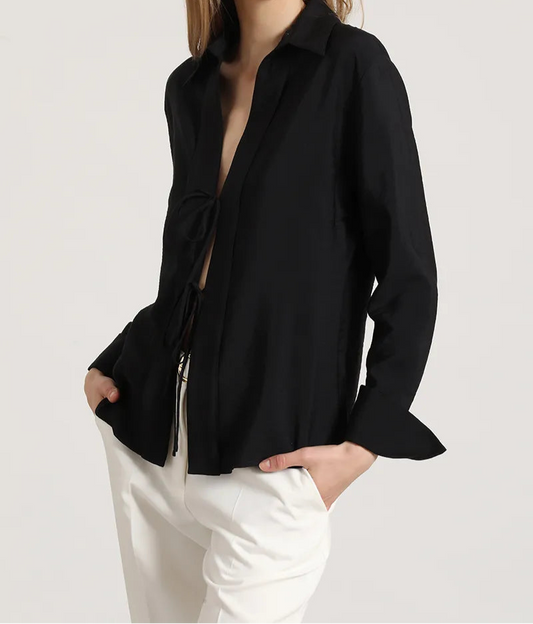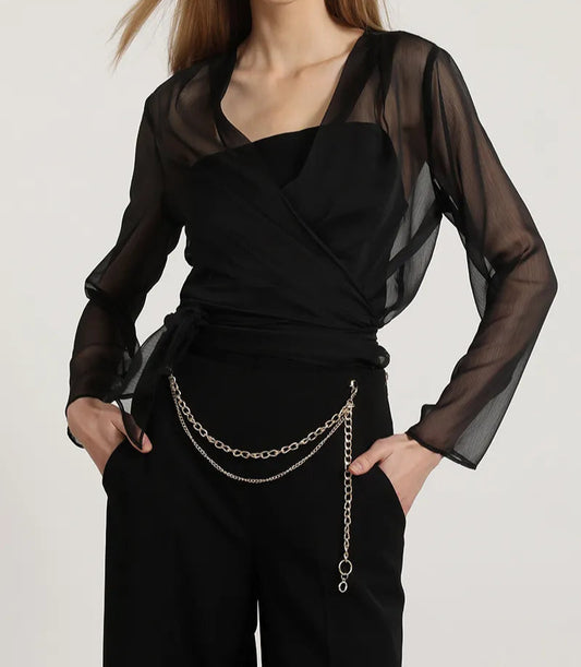 Blusa Mujer Gasa Semitrasparente Amarra En Ruedo Negro