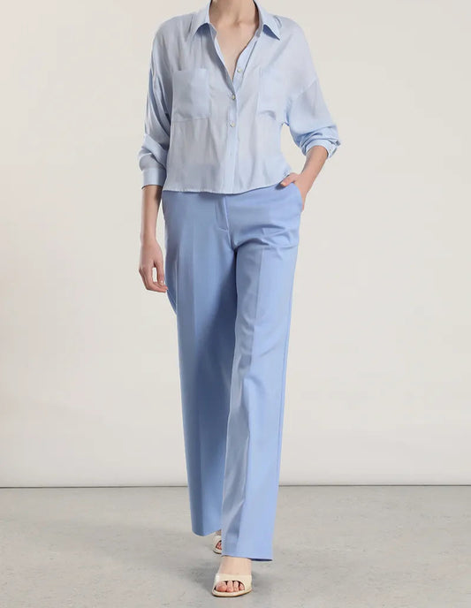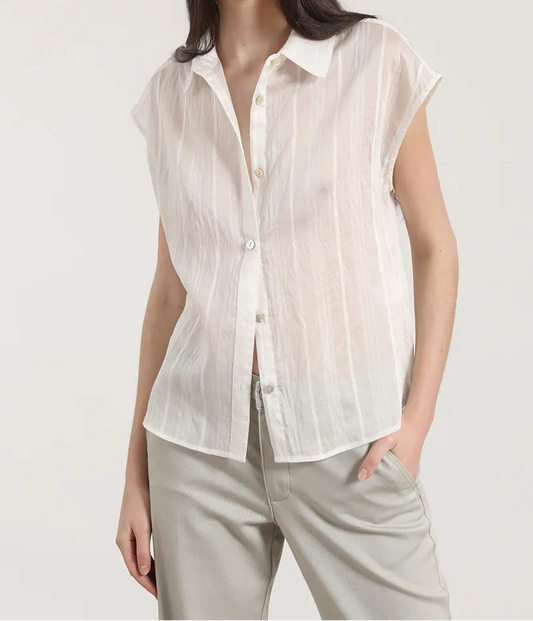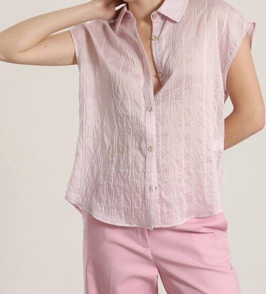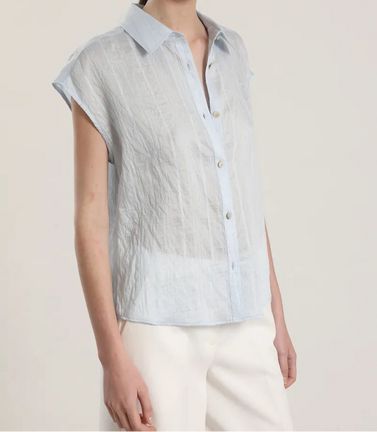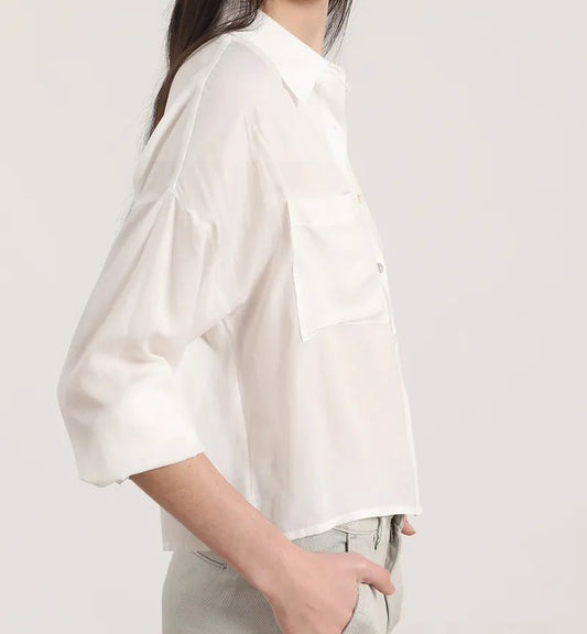 Blusa Mujer Manga Corta Cuello Mao Crudo