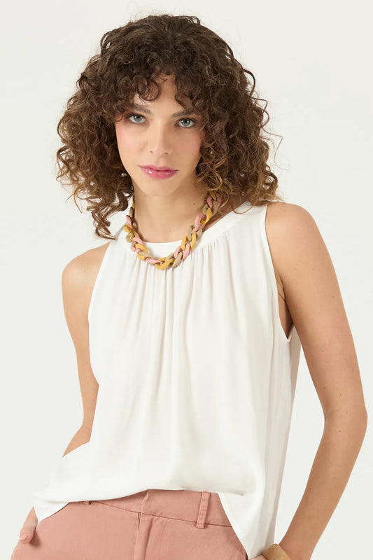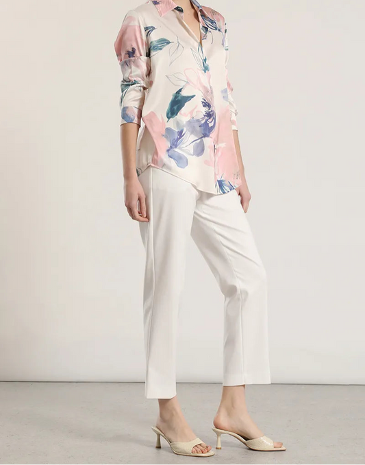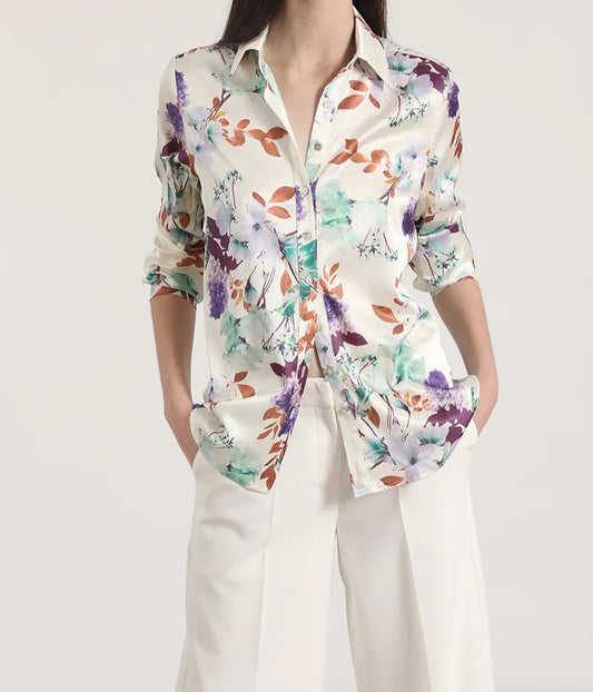 Blusa Mujer Satin Estampado Acuarela Crudo