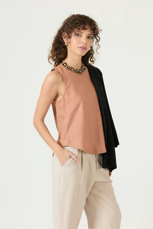 Blusa Mujer Manga Corta Cuello Mao Naranjo