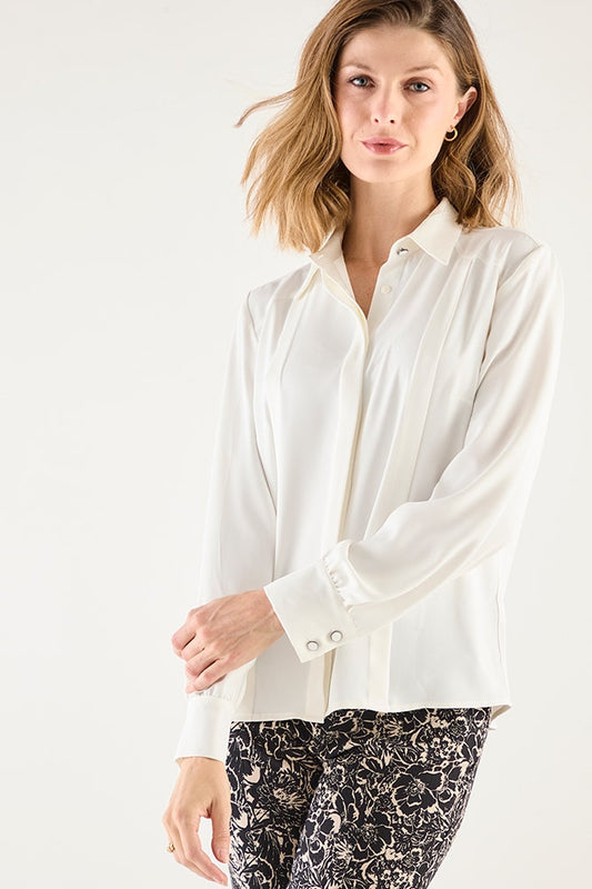 Blusa Mujer Camisera con Plizados Crudo