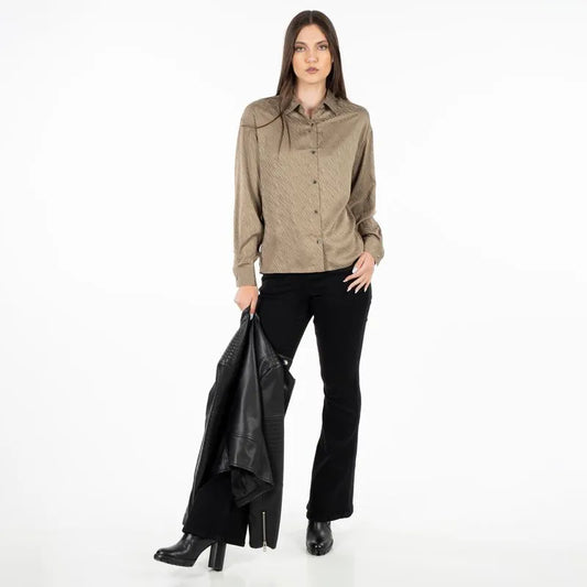 Blusa Mujer M/L Satin Jacquard Zebra Café