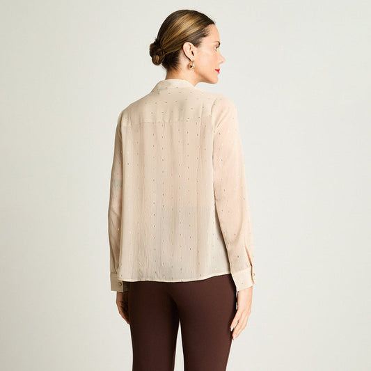 Blusa Mujer Manga Larga Escote Mao Tela Fantasia Beige