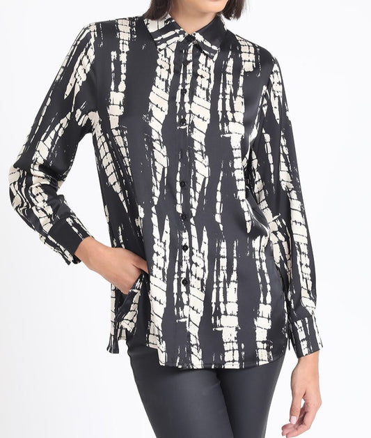 Blusa Mujer M/L Satin Jacquard Zebra Negro