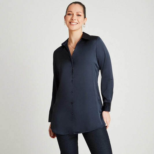 Blusa Mujer Manga Larga Cuello Camisero
