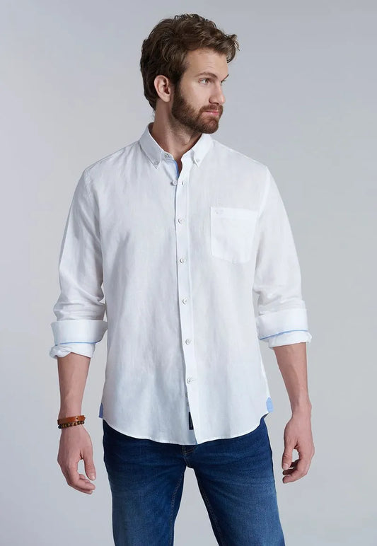Camisa Hombre Sport Lino Blanco