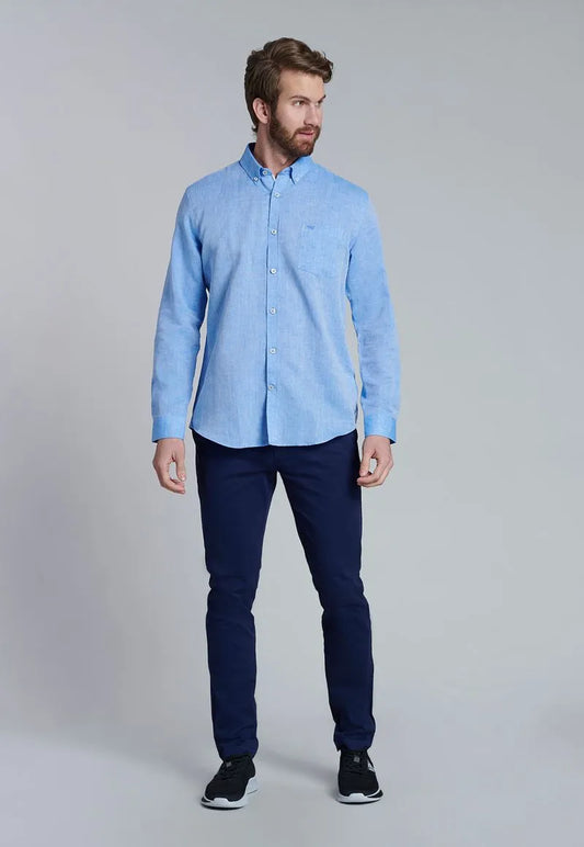 Camisa Hombre Sport Lino Azul