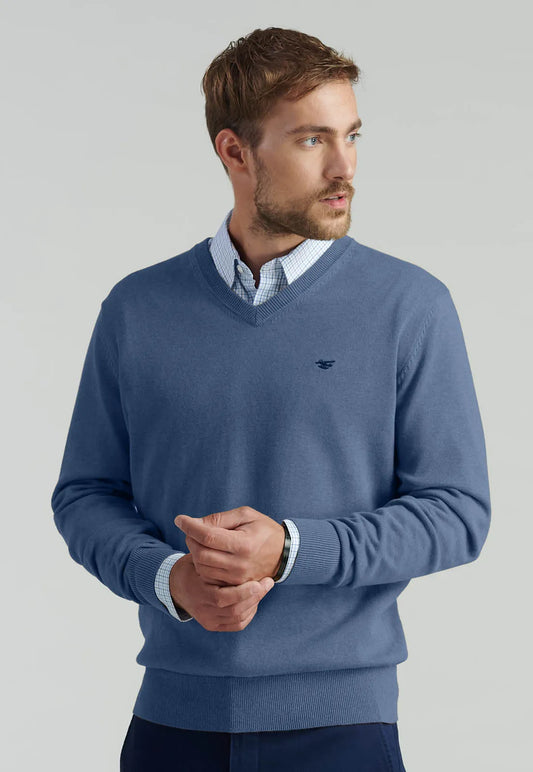 Sweater Hombre V Neck Solido F Smart Casual Dk.Blue