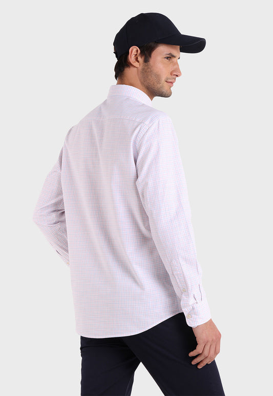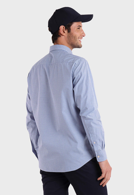 Camisa Hombre Arrow Cuadros Manga Larga Celeste