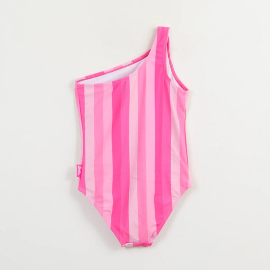 Traje De Baño Etero Niña Rayas Estampado Barbie Fucsia
