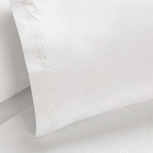 Sábana Rosen 220 Hilos Polycotton Bordada Hoja Blanca