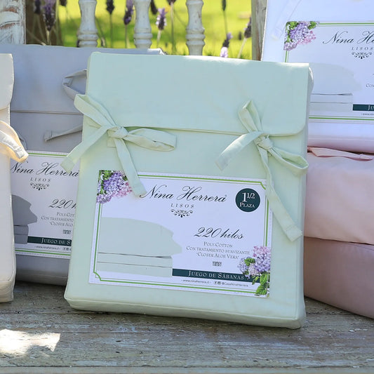 Set Sábana Nina Herrera Lisa Menta 220 Hilos 1,5 Plaza