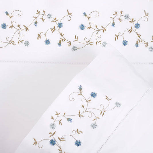 Set Sábana Nina Herrera Bordada Florencia Azul 220 Hilos
