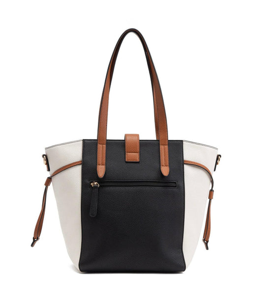 Cartera Mujer Dos Asas Mediana Tostado/Off White