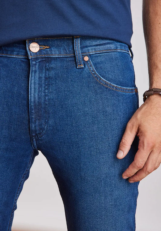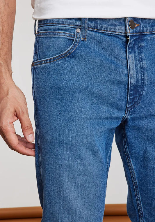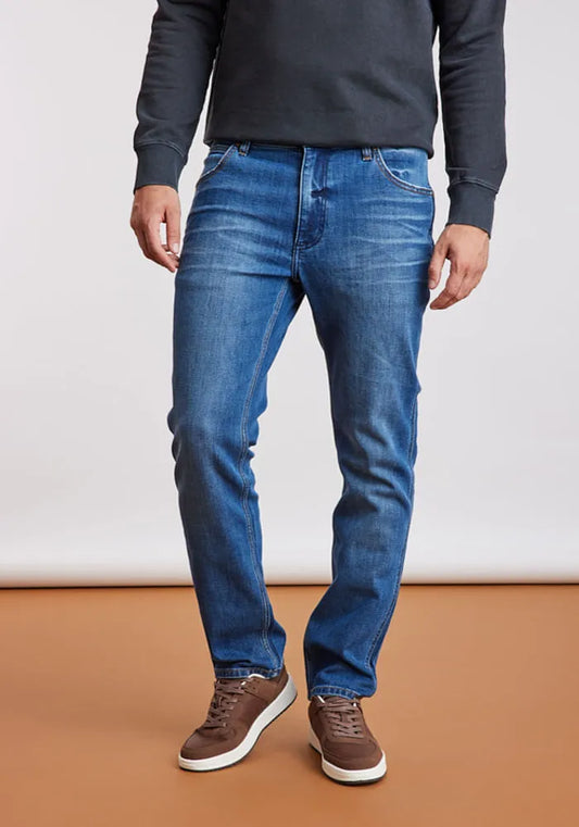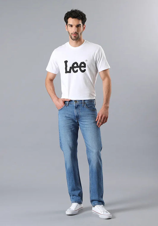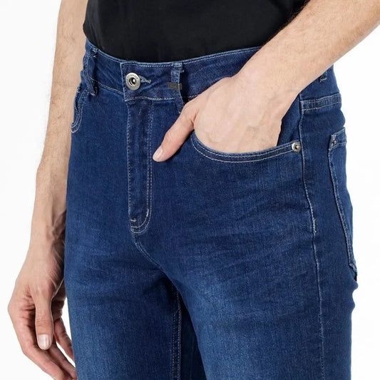 Jeans Hombre Straight Basic Mid Blue Cinco Bolsillos