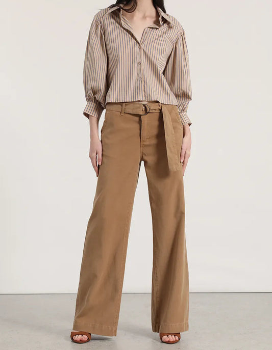 Pantalon Mujer Palazzo Tiro Alto Con Proceso Lyocell Lino Camel