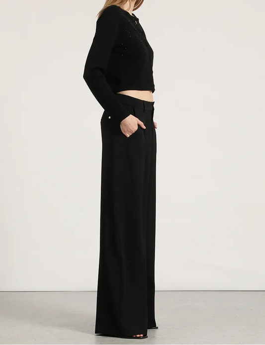 Pantalon Mujer Ancho Pinzas Tiro Alto Negro
