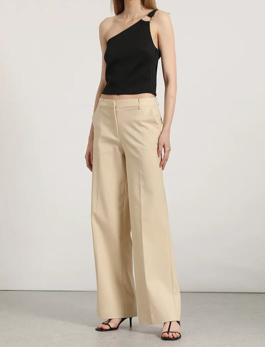 Pantalon Mujer Ancho Pinzas Tiro Alto Beige