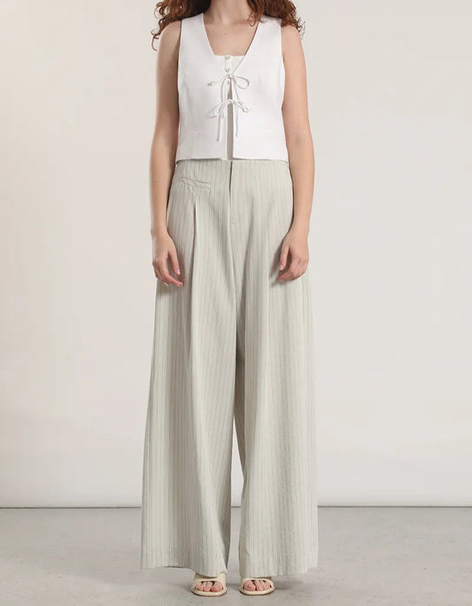 Pantalon Mujer Ancho Tiro Alto Listado Gris