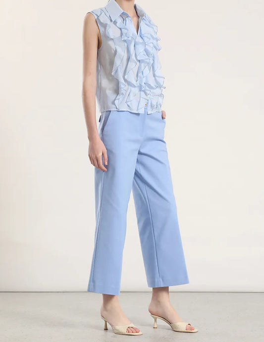 Pantalon Mujer Ancho Cropped Tiro Alto Celeste