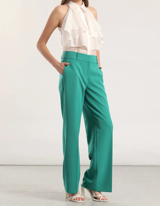 Pantalon Mujer Masculino Recto Tiro Alto Verde