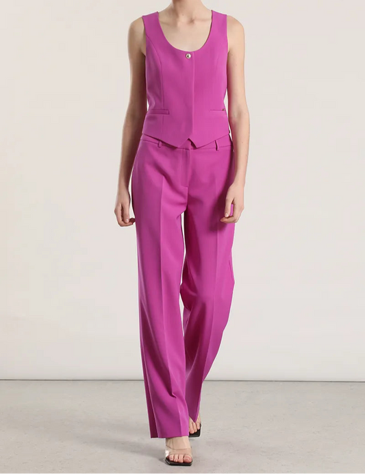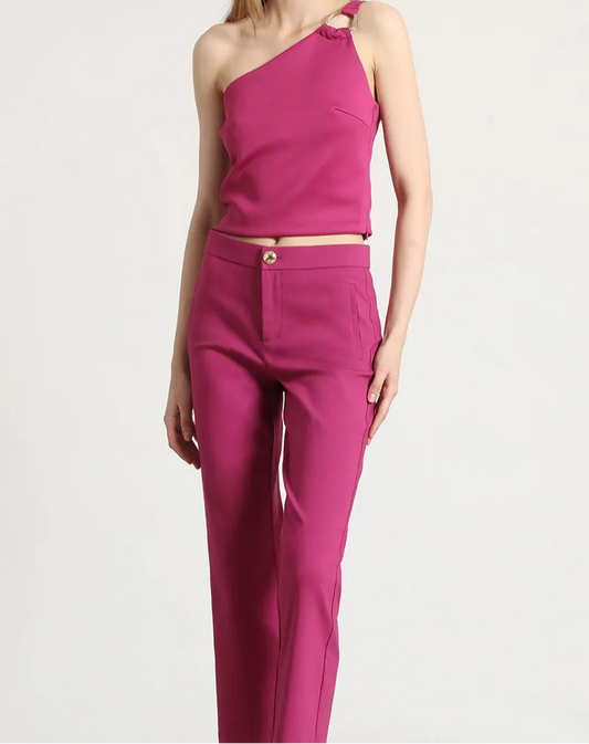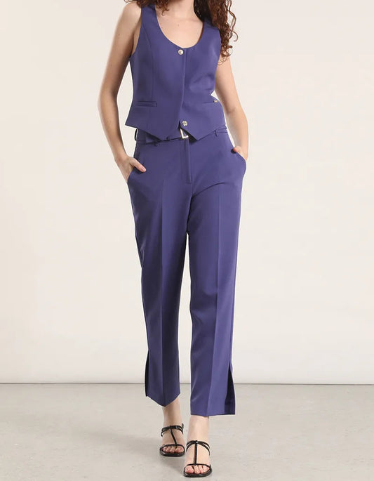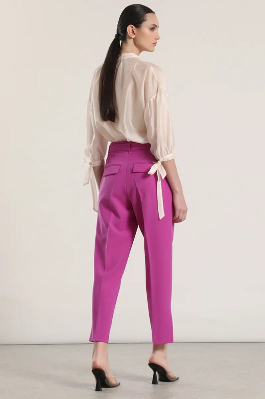 Pantalon Mujer Sastre Tiro Alto Con Cinturon Violeta