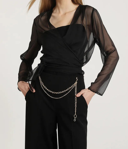 Pantalon Mujer Ancho Tiro Alto Cadenas Desmontables Negro