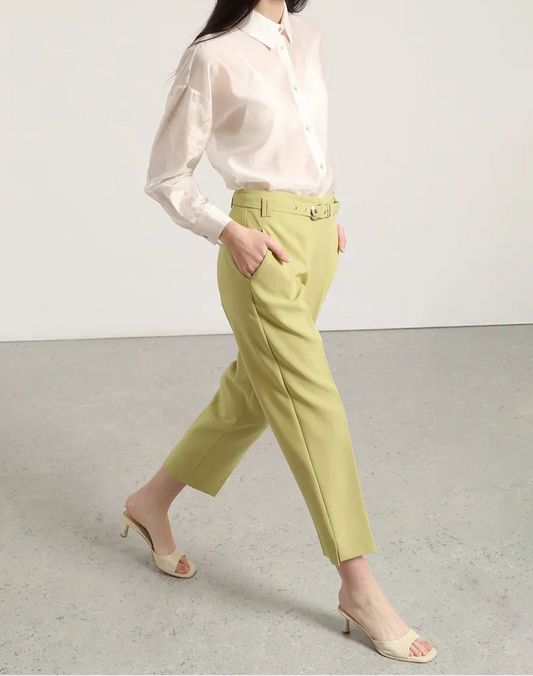 Pantalon Mujer Sastre Tiro Alto Con Cinturon Pistacho