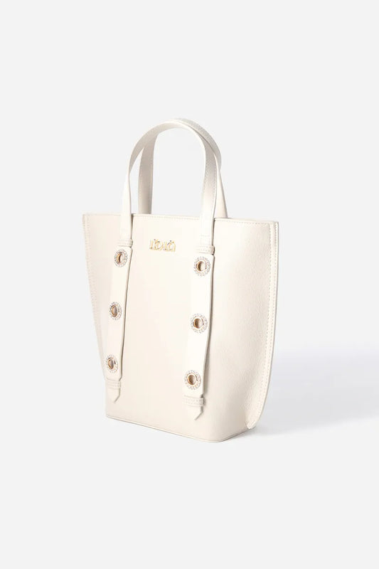 Cartera Mujer Mediana Simil Cuero Granulado Ojetillos Strass Beige