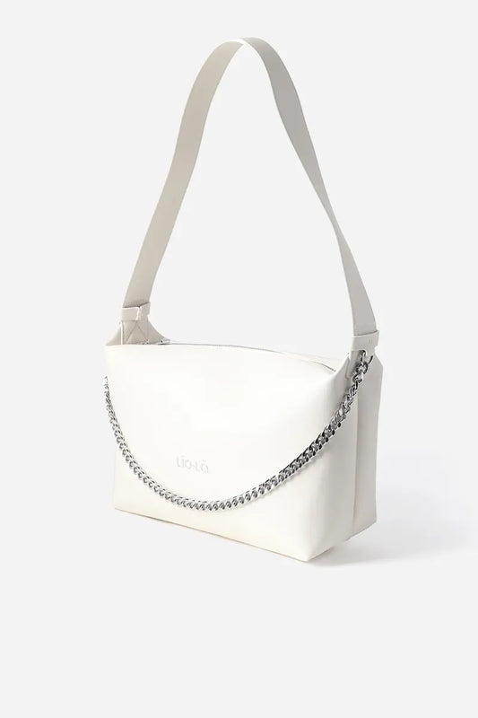 Cartera Mujer Grande Cadena Frontal Simil Cuero Beige