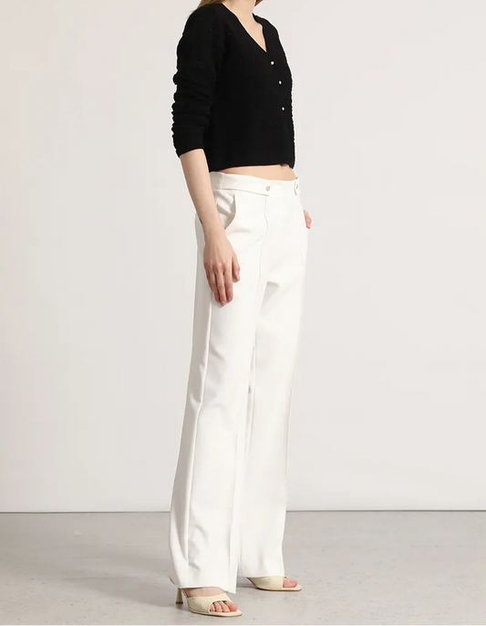 Pantalon Mujer Recto Tiro Alto Aplicación Crudo