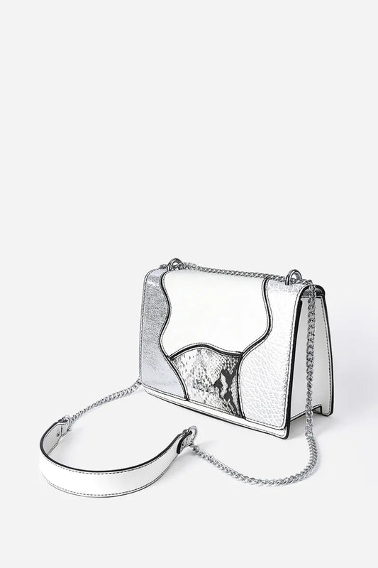 Cartera Mujer Mediana Simil Cuero Patchwork Folia Blanco