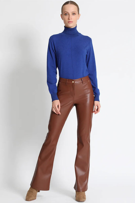 Pantalón Mujer Flare Tiro Medio Efecto, Cuero Chocolate Liola