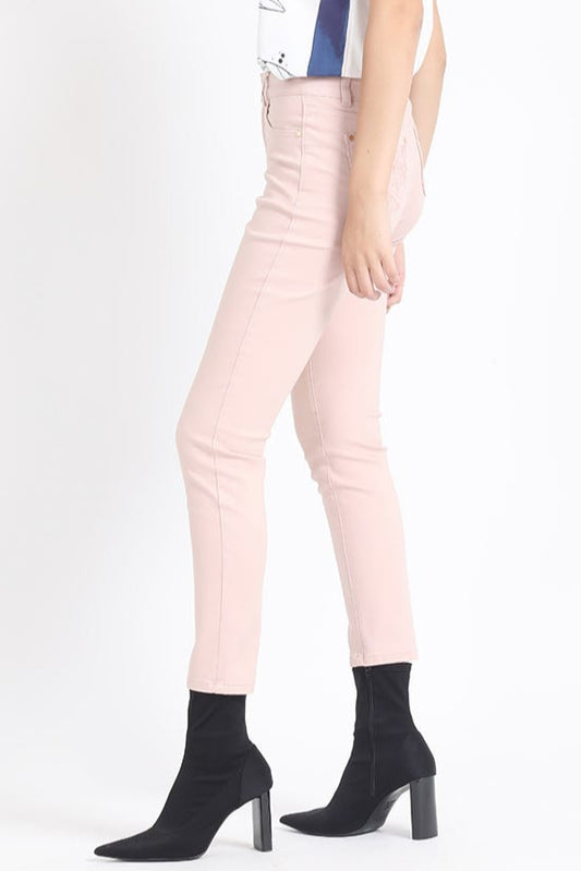 Jeans Mujer Skinny Tiro Medio Con Bordado Rosa