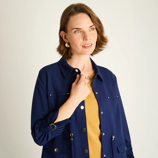 Chaqueta Mujer Azul con Ajuste en la Cintura