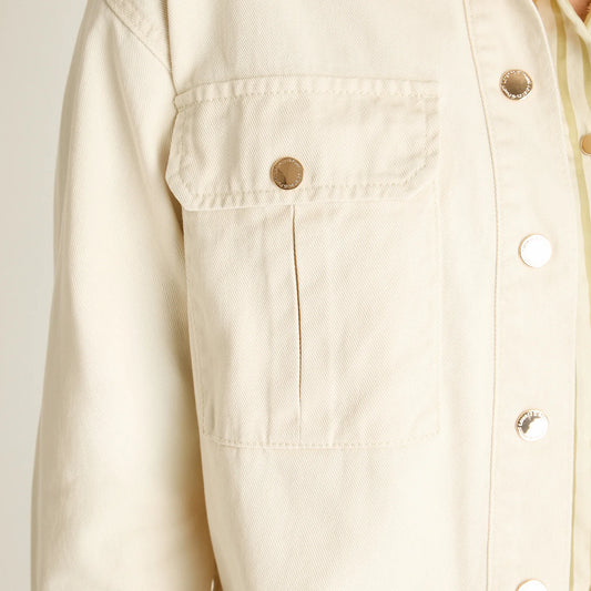 Chaqueta Mujer de Mezclilla Arena con Bolsillos