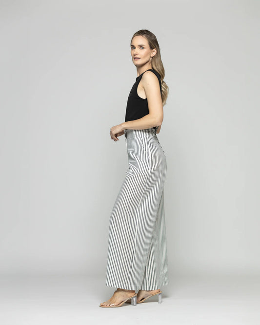Pantalón Mujer Liatris Largo Clásico Algodón Rayas Negro Y Blanco Ludovica