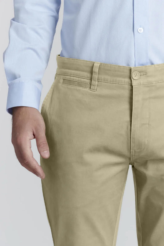 Pantalón hombre Chino de algodón de corte regular Beige