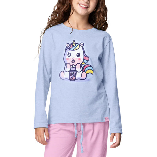 Pijama Niña Largo Algodón Invierno Celeste/rosado