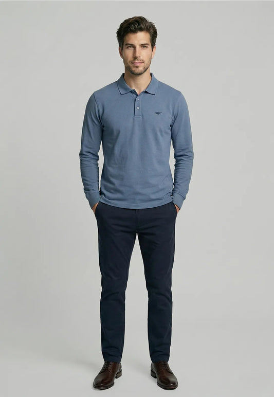 Poleras Hombre Basica Ml Pique Sky