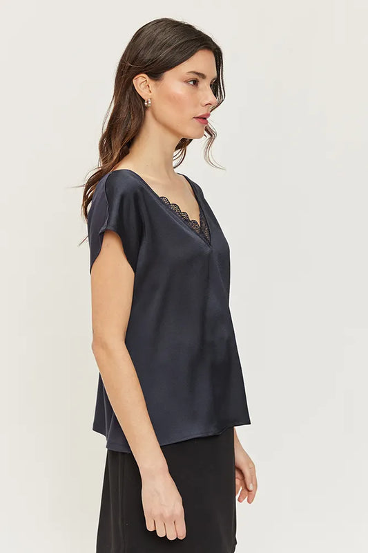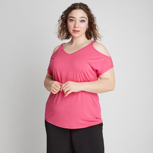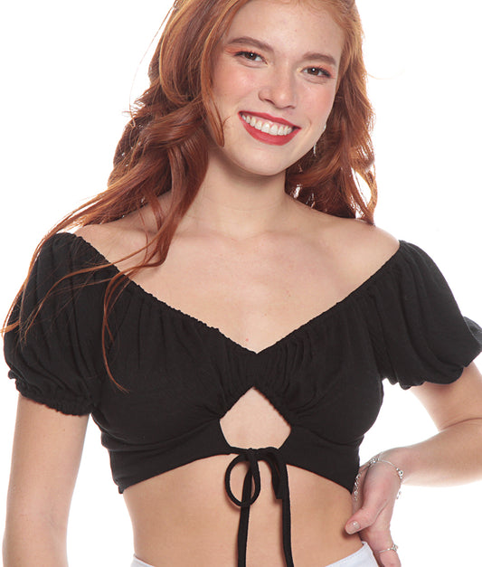Polera Mujer Corta M/C Con Elástico Solida Amarra Ajustable Negra