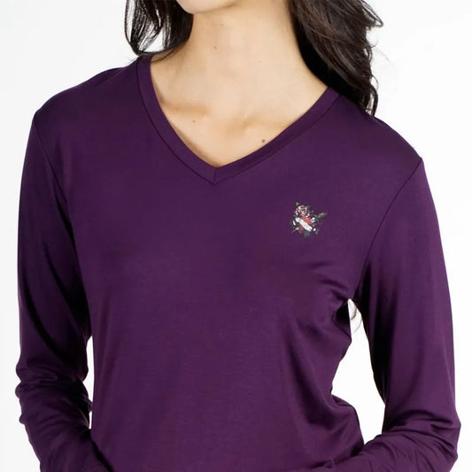 Polera Mujer M/L Basic Heavy Viscosa V Neck Berenjena