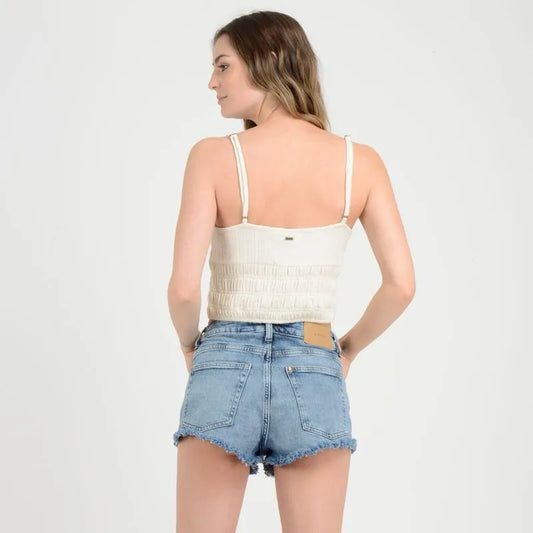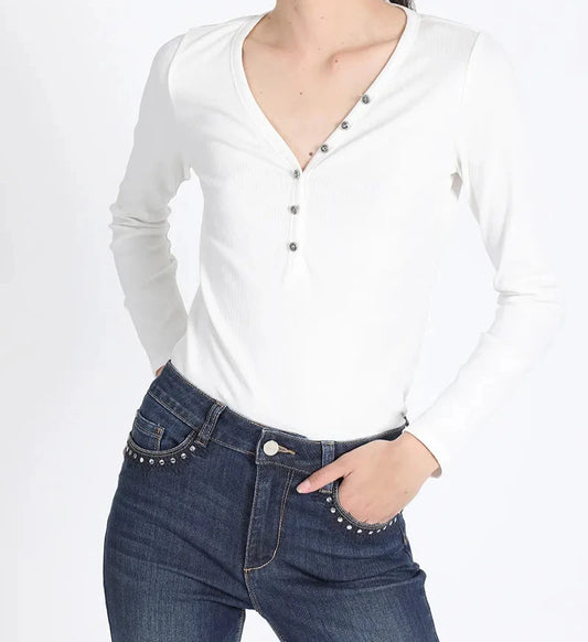 Polera Mujer Basica Ribb Boton Joya Crudo