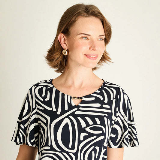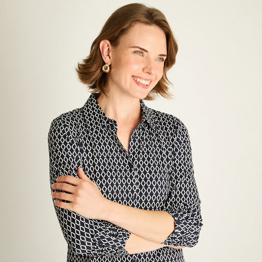 Polera Mujer Manga Corta Azul Estampada