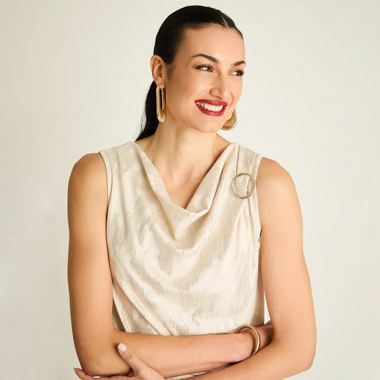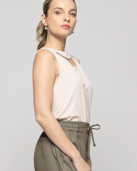 Polera Mujer Beige Sin Mangas con Argolla