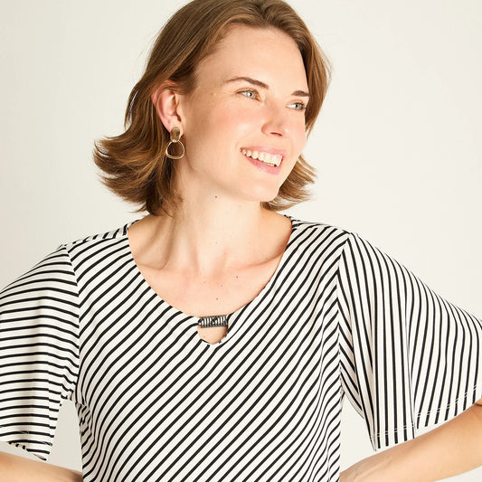 Polera Mujer Nemesia Escote V Manga Corta Rayas Multicolor Ludovica